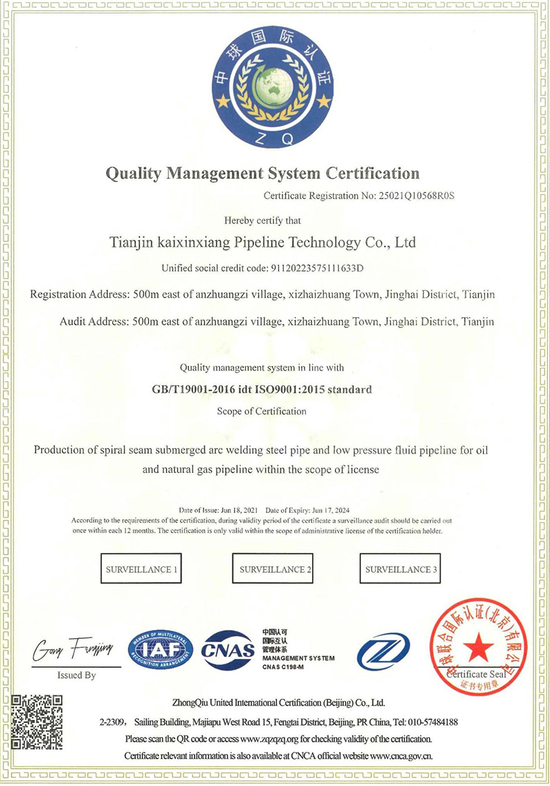質(zhì)量管理體系認(rèn)證證書(shū)